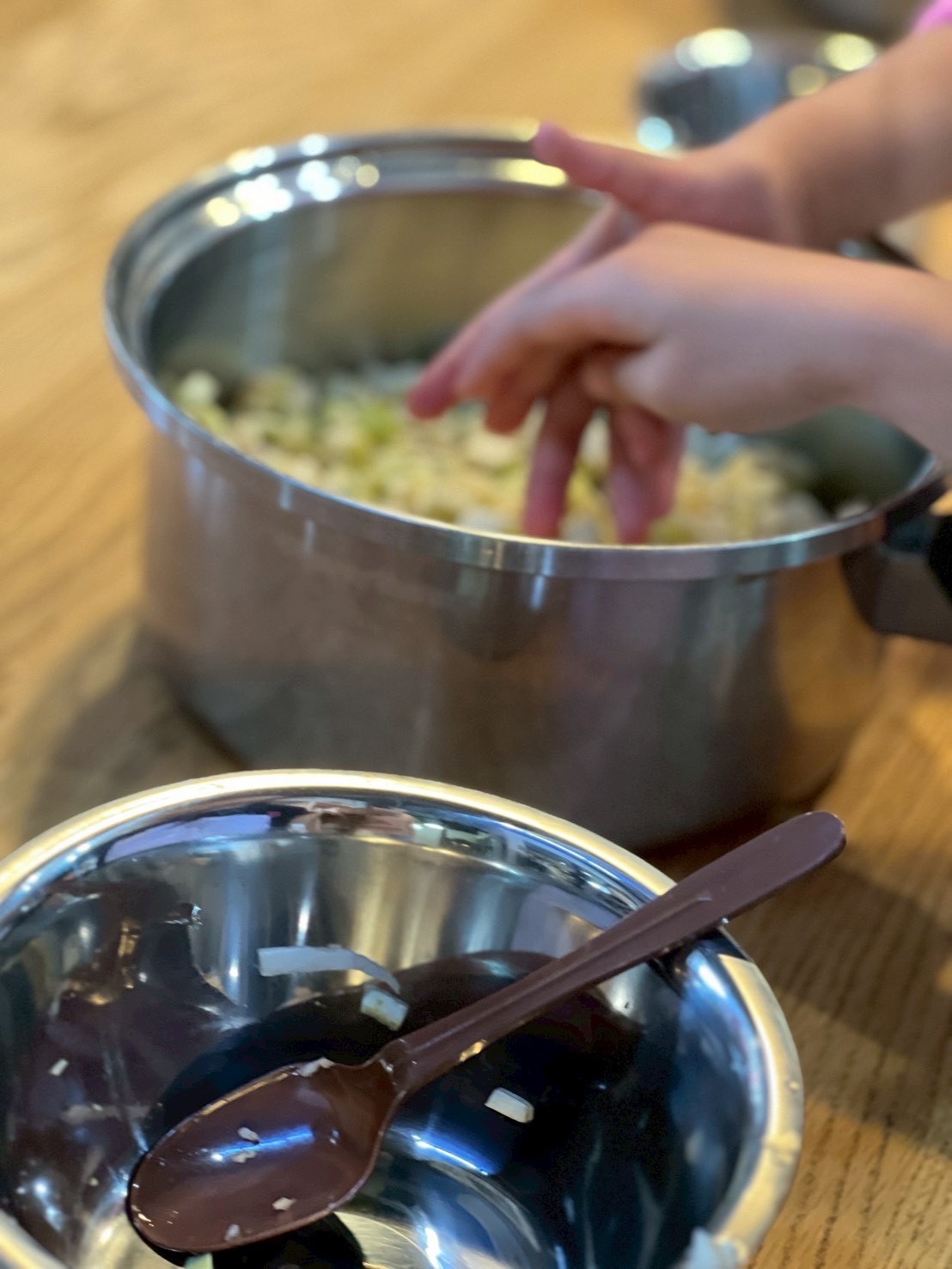 そのあとお子様に手伝って頂き、重ね煮の材料をお鍋に順番に入れていきます。